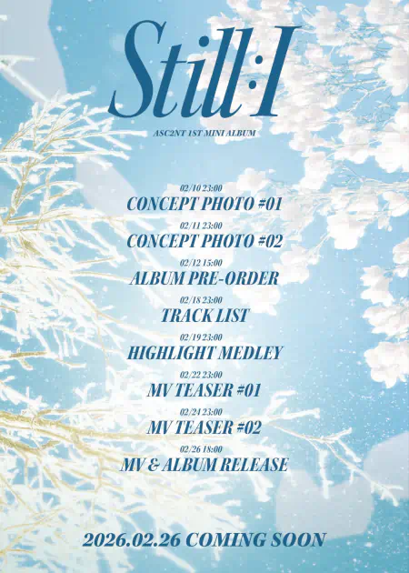 ASC2NT poursuit son projet de sorties musicales autour des saisons. Après le single ‘Replay’ en décembre 2025, le groupe annonce son comeback le 26 février 2026 avec un premier EP, ‘Still:I’ qui correspond au printemps.